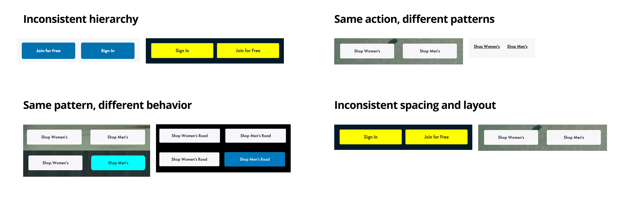 Hierarchy: Primary vs Secondary actions must be visually consistent